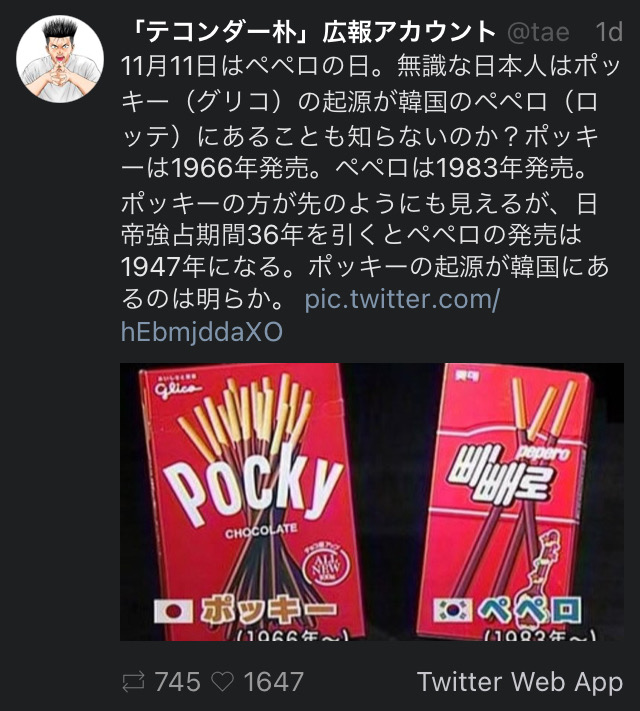 「ペペロ(ポッキーに似た韓国のチョコレート菓子)もセウカンもチョコソンイもパクリ。韓国は日本がいなければ菓子も食べられなかった」