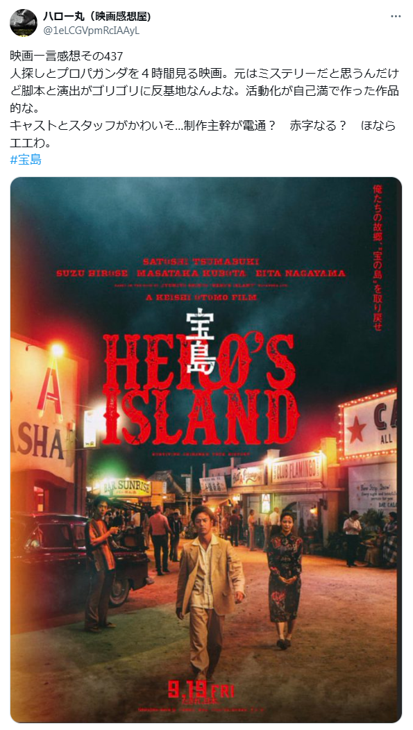 X¤Ç¤³¤Î±Ç²è¤Î¥ì¥Ó¥å¡¼¡ÖËÜÅڤοʹ֤³¤½¸«¤ë¤Ù¤±Ç²è¡×¤ß¤¿¤¤¤Ê¤Î¤¬¤±¤Ã¤³¤¦¤¢¤Ã¤Æ