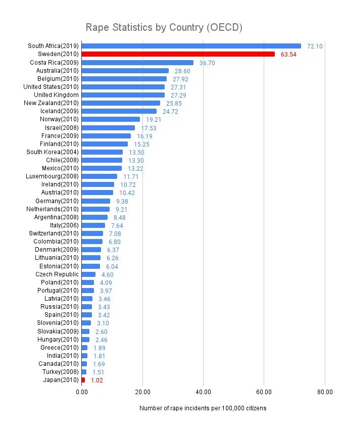 レイプの定義が違うか、暗数やろ