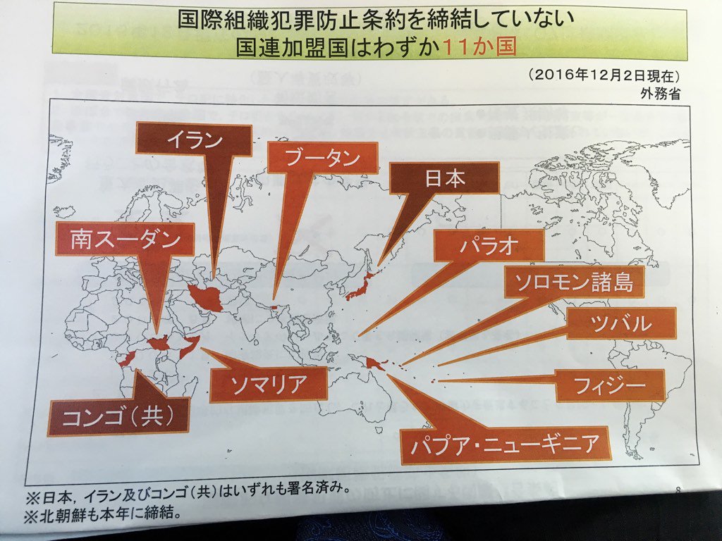 共謀罪のない国に何故か日本が入ってたのが異常 (´・ω・`)