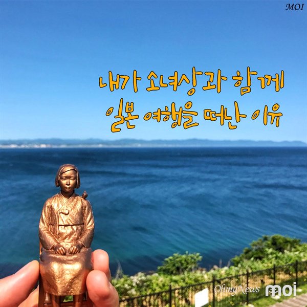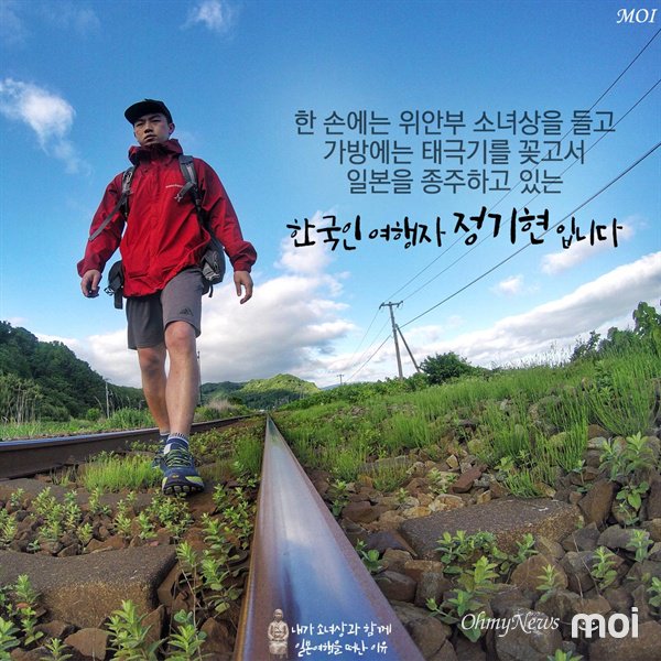 この青年は「片手に少女像、片手には太極旗」つまり、慰安婦像を持って日本列島横断してる人。巡礼者に見える。