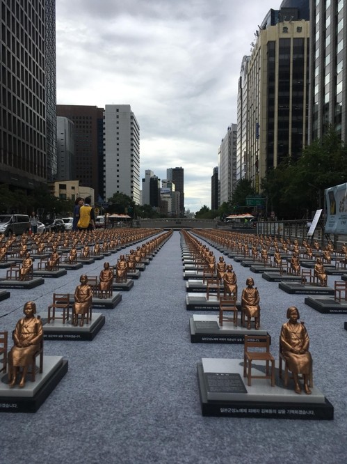 慰安婦記念日を迎えソウルの広場に慰安婦像500体を展示 圧倒されるど迫力!