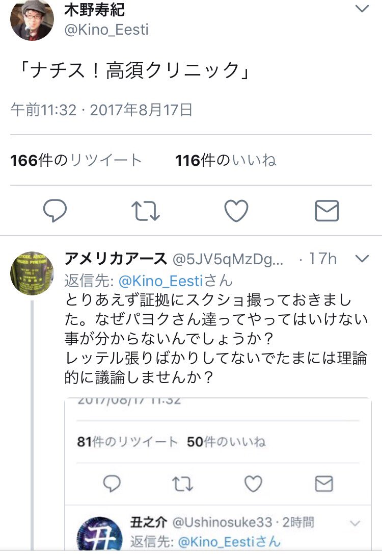 ざっと調べたところ、木野寿紀は高須クリニックを馬鹿にしまくっていることが分かった。
