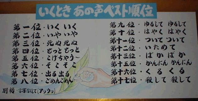 ¥»¥Ã¥¯¥¹¤Î²ó¿ô¤¬Â¿¤¤¡£Äã²»¤Ç¶õµ¤¤ò¥¹¥£¡¼¥¹¥£¡¼¤¿¤¯¤µ¤ó½Ð¤·¤Ê¤¬¤éÓä°¡£¡Ö¥¹¥£¡¼¥¹¥£¡¼¥¹¥£¡¼¥¦¡¼¥·¥«¥¸¥ã¡¼¥¤¡×¤Ê¤É¡£¡Ö¥ä¡¼¥«¥ó¥Á¥ã¡¼¥æ¡×¤È¤¤¤¦¡Ö½ª¤ï¤Ã¤Á¤ã¤¤¤Þ¤¹¡×¤Î°ÕÌ£¤Î¸ÀÍÕ¤ò·«¤êÊÖ¤¹¿Í¤â¡£