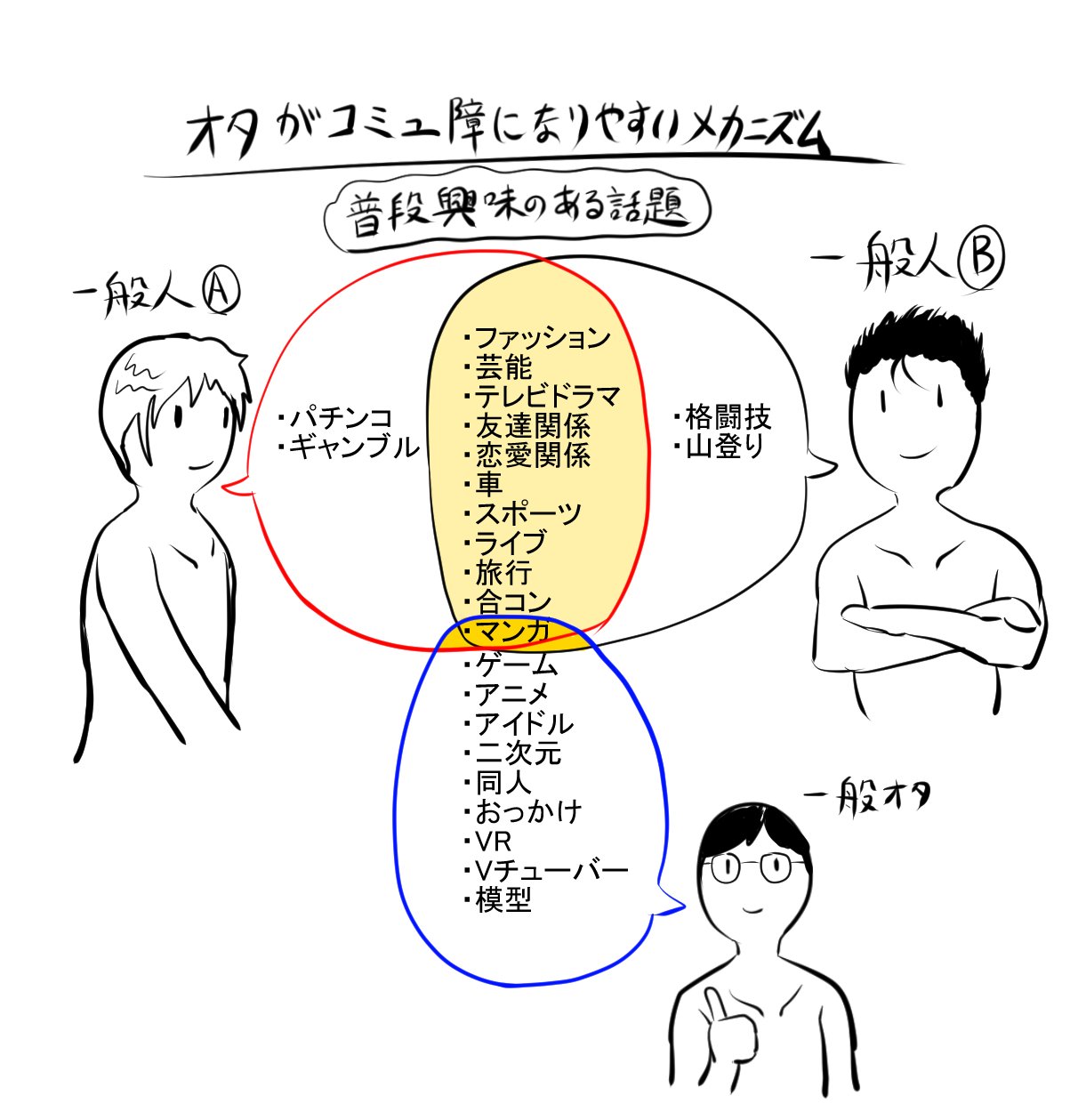 よく一般人が「オタは何考えてるかわからない」とか「オタは会話が続かない」みたいな事を言ってるけど、会話スキルがこんな感じだから仕方ないんや…