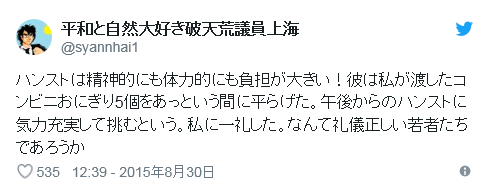 ¤³¤Î¥Ä¥¤¡¼¥È¤Ã¤Æ¡Ö¥Ï¥ó¥¹¥È¤È¤«¤¤¤¤¤Ê¤¬¤é¿©¤Ã¤Æ¤ë¤¸¤ã¤Í¡¼¤«¡ªw¡×¤Ã¤Æ¥Ä¥Ã¥³¥ß°Ê³°¤Ë