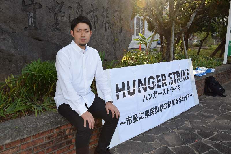 ²Æì¸©Ì¾¸î»ÔÊÕÌî¸Å¤Î¿·´ðÃÏ·úÀߤλ¿ÈݤòÌ䤦¸©Ì±Åêɼ¤ËÉÔ»²²Ã¤òɽÌÀ¤·¤Æ¤¤¤ë£µ»Ô¤ËÅêɼ¼Â»Ü¤òµá¤á¤è¤¦¤È¡¢¡Ö¡ØÊÕÌî¸Å¡Ù¸©Ì±Åêɼ¤Î²ñ¡×¤Î¸µ»³¿Î»ÎϺÂåɽ£²£·¤Ï£±£µÆü¸áÁ°¡¢µ¹ÌîÏÑ»ÔÌò½êÁ°¤Ç¥Ï¥ó¥¬¡¼¥¹¥È¥é¥¤¥¤ò»Ï¤á¤¿¡£