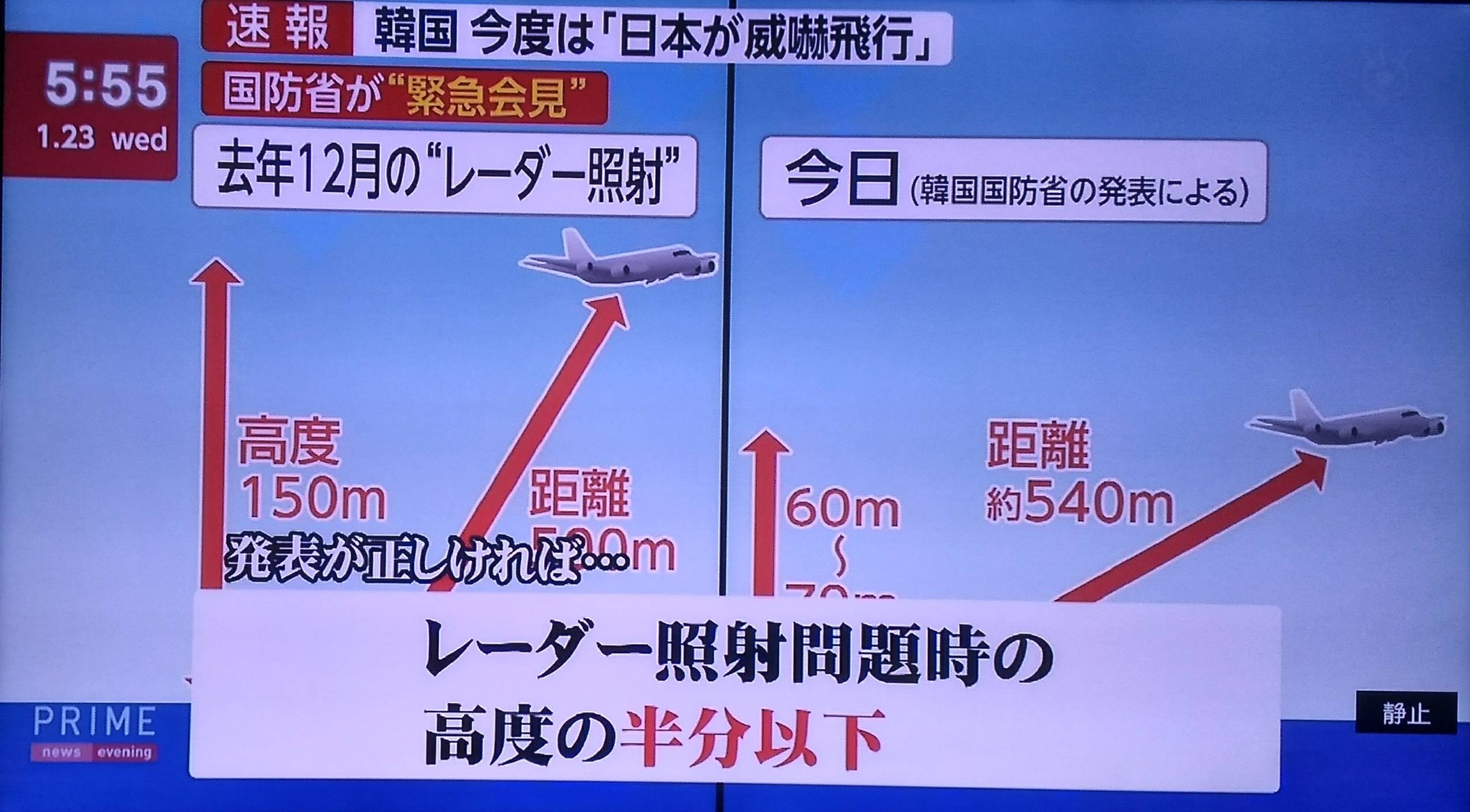 艦艇に対して高度約60〜70メートル、距離540メートルの近接威嚇飛行を行ったとし、