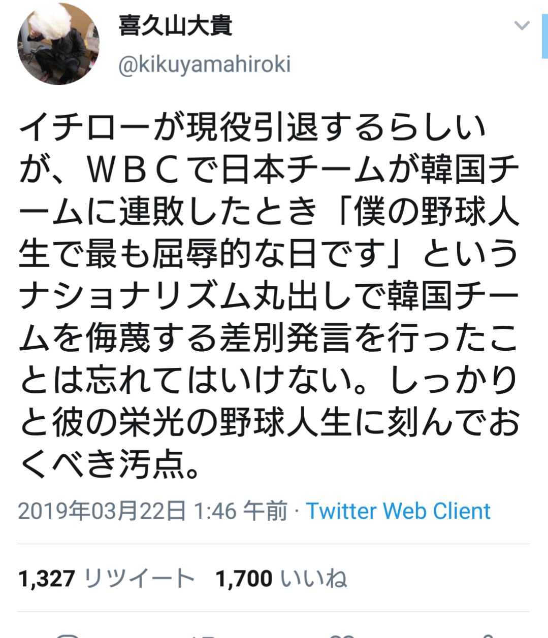 これにネットユーザーが激怒。「イチローはヘイト発言をしていない」