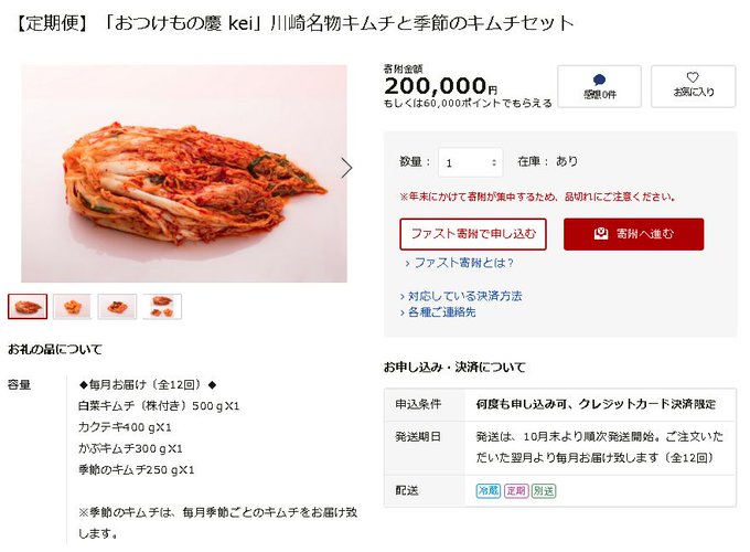 なんで返礼品がキムチなの?ねえ、なんでキムチなの?