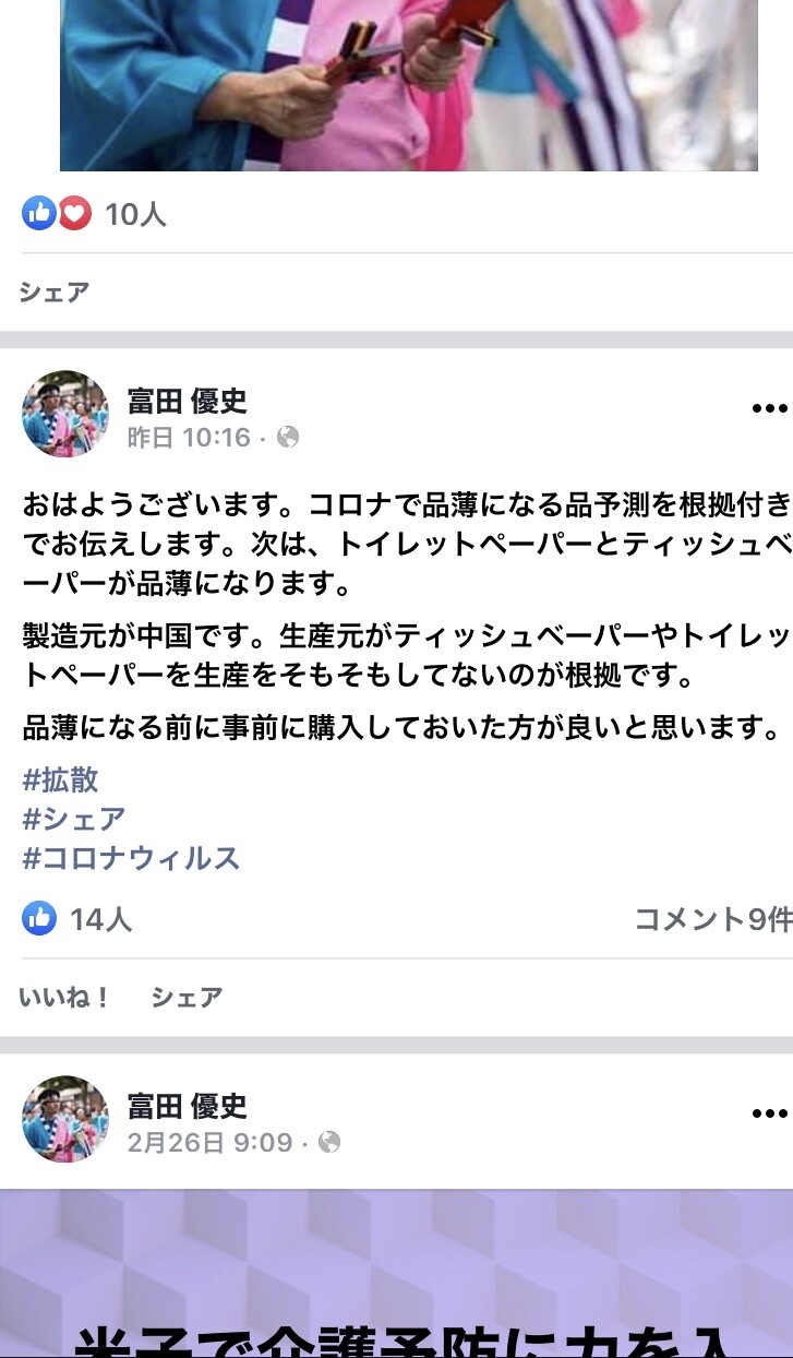 トイレットペーパー売り切れのデマを流した富田くん