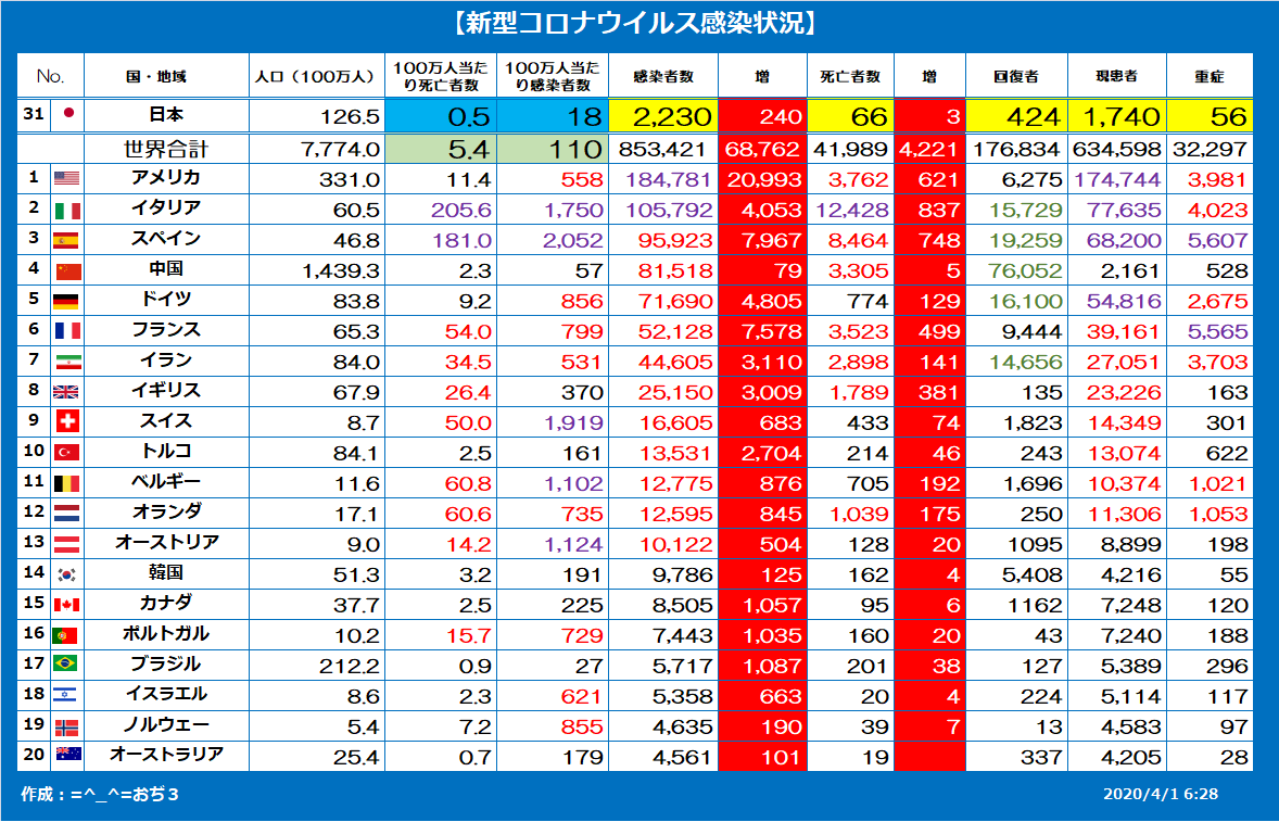 ³Æ¹ñ¿Í¸ý100Ëü¿Í¤¢¤¿¤ê¤Î»à¼Ô¿ô¤ÇÈæ¤Ù¤Æ¤ß¤í