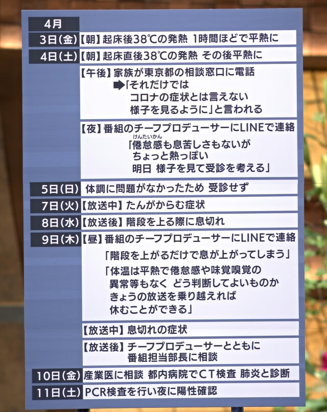 その後、12日には富川アナの感染を明らかにした。ともに同局4階の報道フロアに勤務しており、