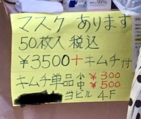 他の店に関しても急激にマスクの価格が下がっており、50枚を約1000円で販売している店が出てきている。