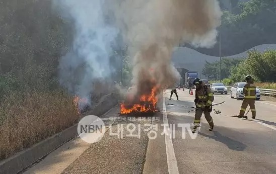 去る4日午後4時50分頃、慶南金海市南海高速道路昌原2トンネル近くで納車されてから6日になる新車のジェネシスG80のエンジンルームで火災が発生した。