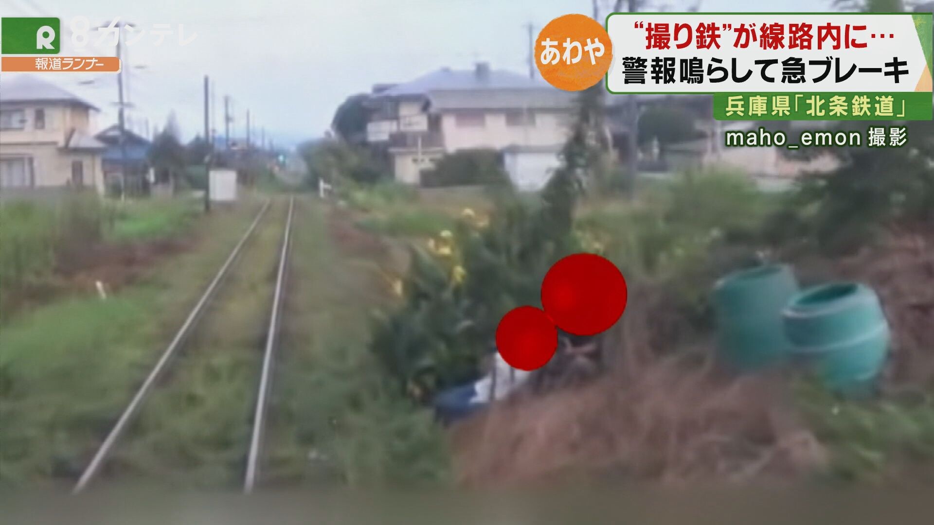 あわや接触…線路内に”撮り鉄” 列車は急ブレーキ 兵庫・北条鉄道