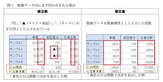 マイナスを意味する“▲”など、文字列は数値データに含めないようにする