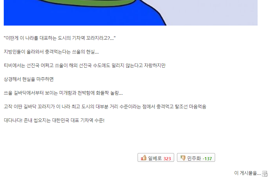 韓国人「ここが韓国を代表する都市の駅だと…?テレビでは先進国云々言うが実際に見るとソウルの路上から見える未開さと下品さにビビる」