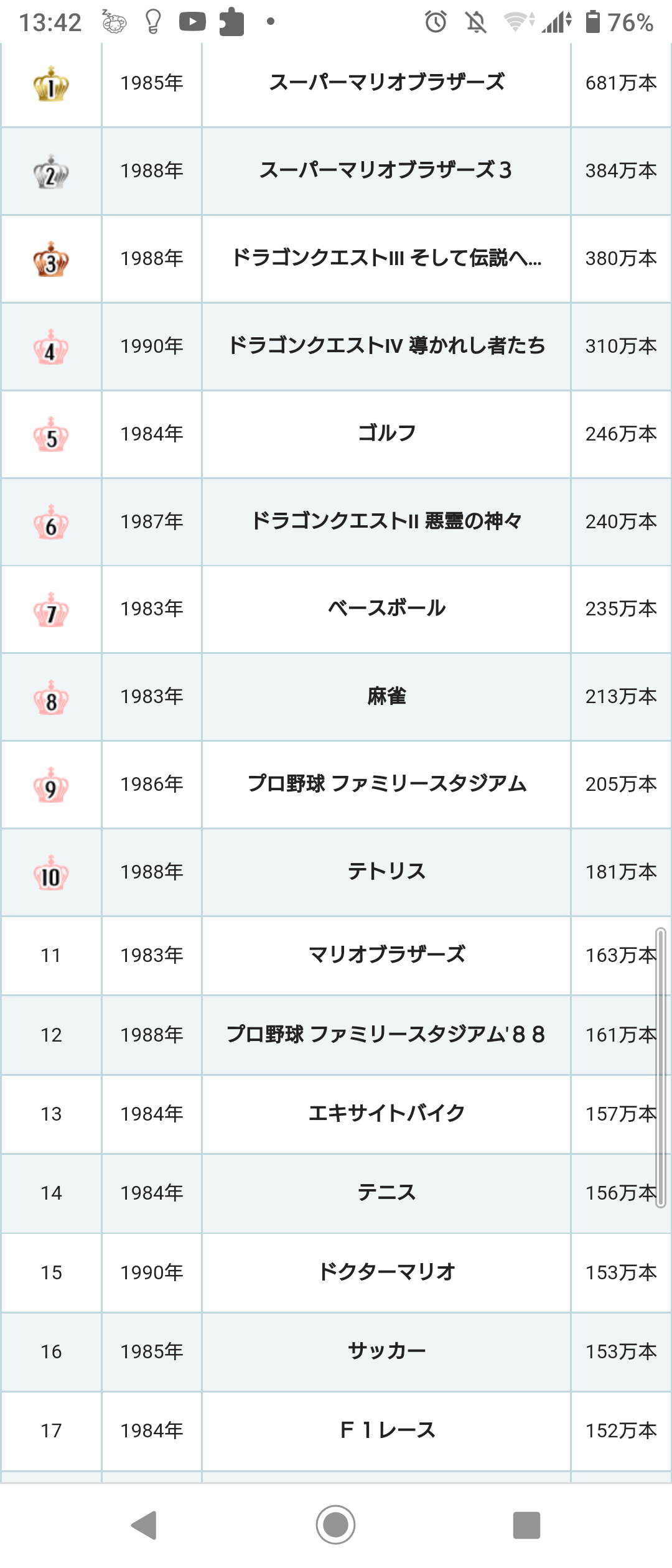 ファミコンのソフト売上見てたんだけど麻雀とかゴルフでミリオン超えてるの羨ましい開発者数人でどんなけ儲けたんだろ(´・ω・`)