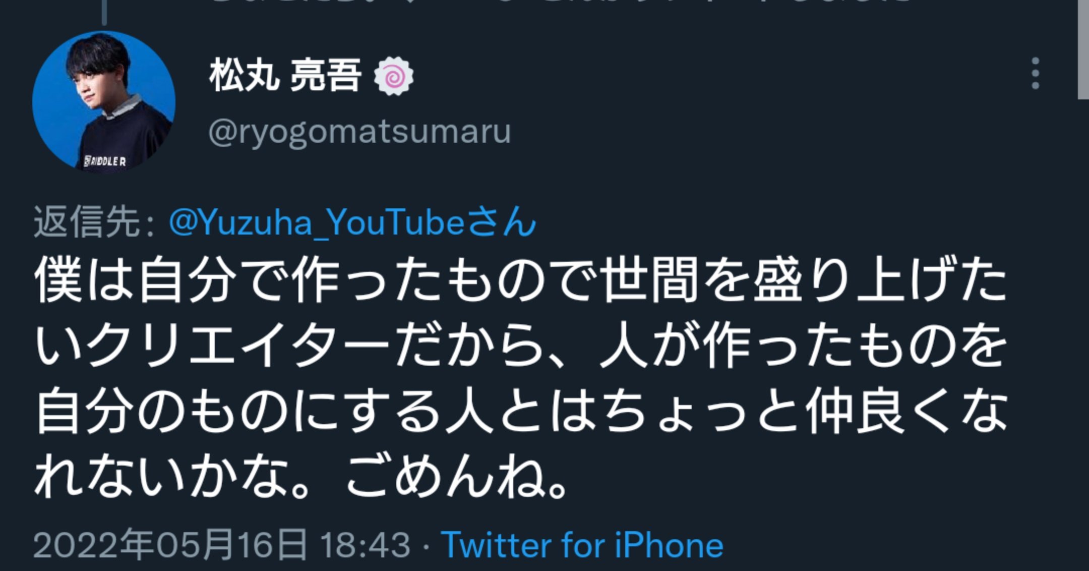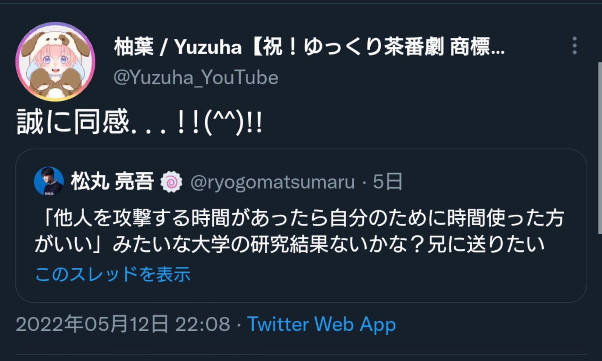 柚葉のTwitterの主張では
