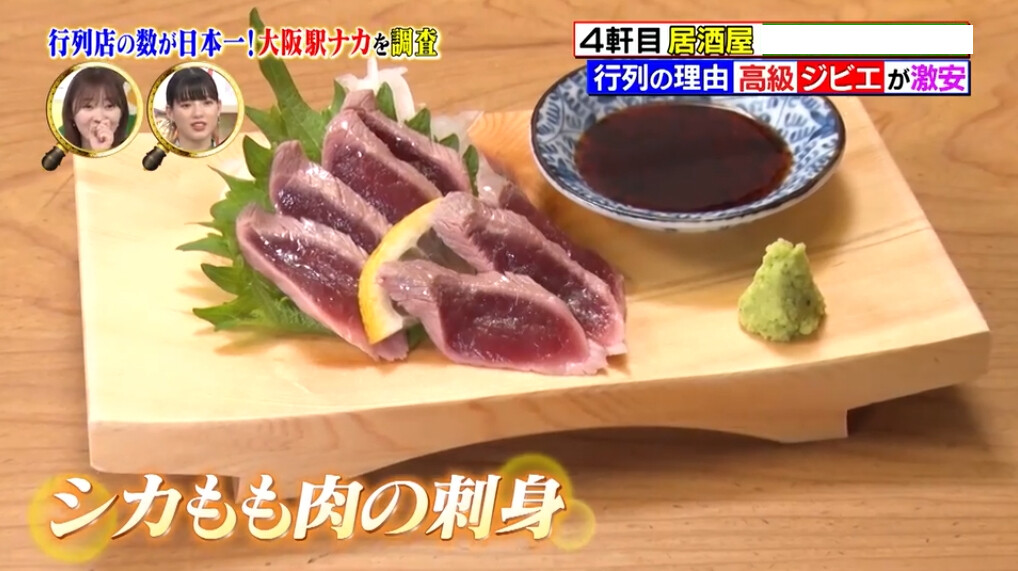 番組が取り上げたのは、大阪市にある居酒屋が提供しているジビエ料理「シカもも肉の刺身」だ。お笑いコンビ・U字工事と石原良純さん(60)が「シカもも肉の刺身」を食べていたが、ジビエを生で食べることに関して、同番組による説明や注意喚起などは行われていなかった。
