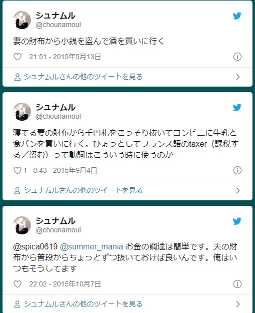 嫁の財布からお金を抜き取るのはそもそも盗みじゃないのにね(´・ω・`)