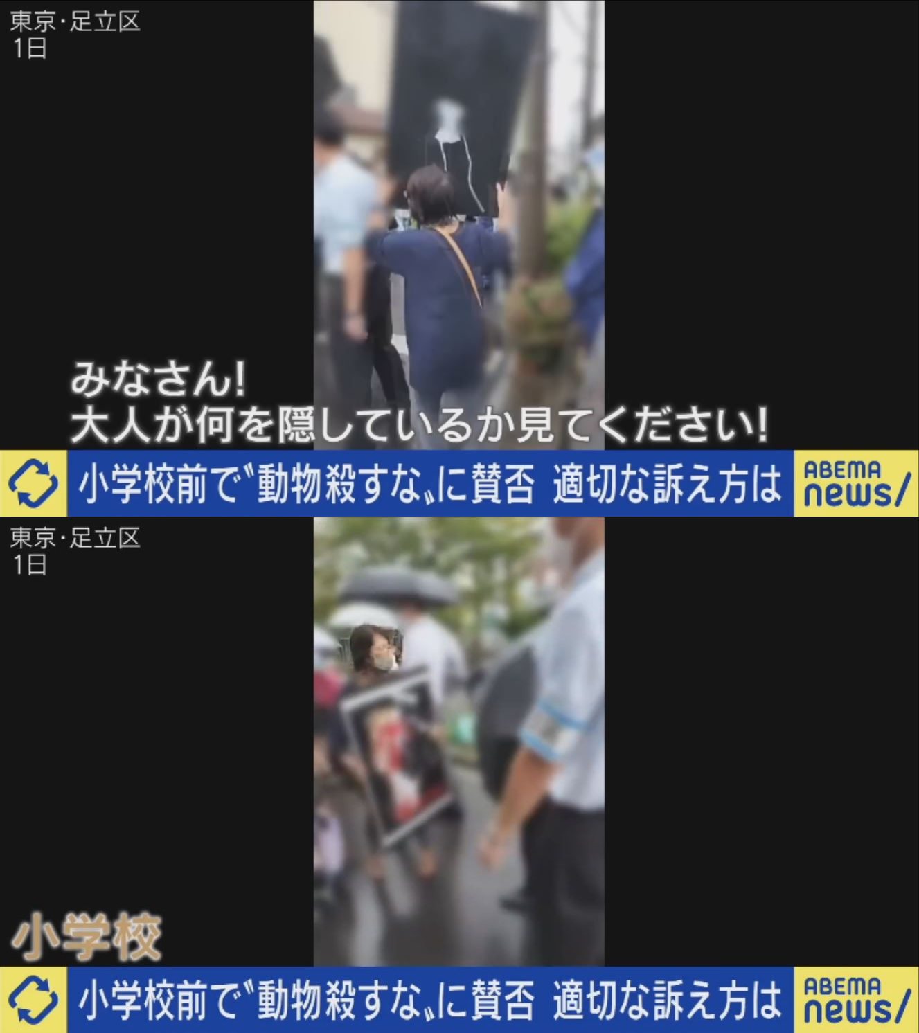 ÅÔÆâ¤Î¾®³Ø¹»¤ÎÁ°¤Ç¡¢Å黤¹¤ë»ùƸ¤Ë¸þ¤«¤Ã¤Æ¥Ñ¥Í¥ë¤ò¼ê¤ËÀ¼¤òÄ¥¤ê¾å¤²¤Æ¤¤¤ë¿Í¤¿¤Á¡£