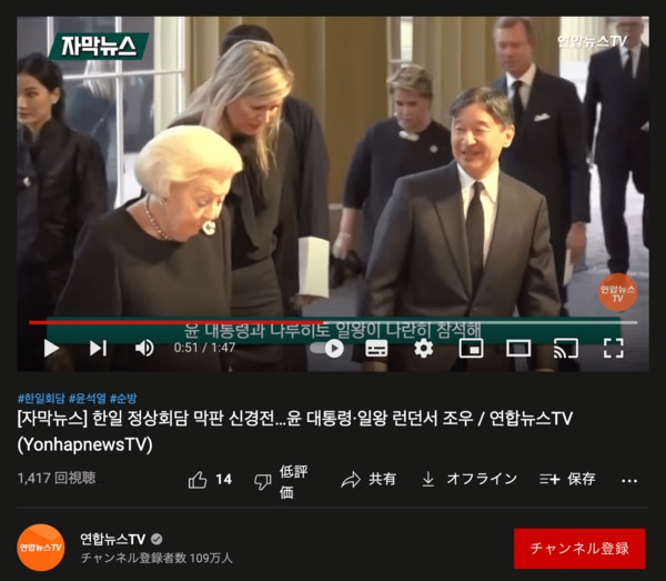 一方で、韓国の報道は尹大統領が英国に発つ前から「歴代級の弔問外交だ」「先取り、経済外交の展望は?」「日本からはナルヒト日王夫婦が出席する」と、要人らとの交流を期待する声が多かった。