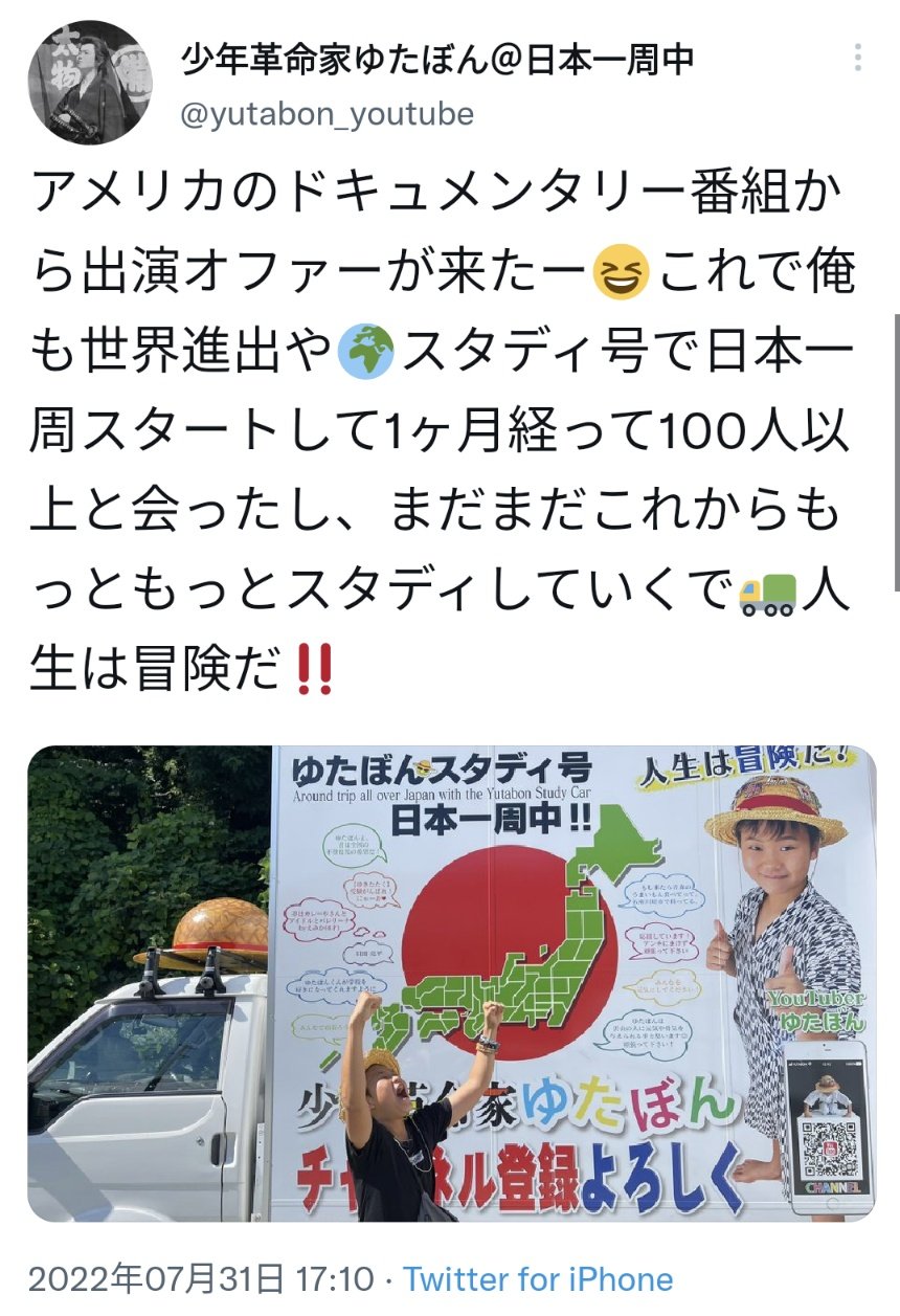 ¾¯Ç¯³×Ì¿²È¤ò̾¾è¤ê¡¢³Ø¹»¤ËÅ黤»¤º¤ËÆüËܰì¼þ¤Îι¤Ë½Ð¤Æ¤¤¤ë¥æ¡¼¥Á¥å¡¼¥Ð¡¼¡¦¤æ¤¿¤Ü¤ó¡Ê£±£³¡Ë¤¬£±£°Æü¡¢¥Ä¥¤¥Ã¥¿¡¼¤ò¹¹¿·¡£