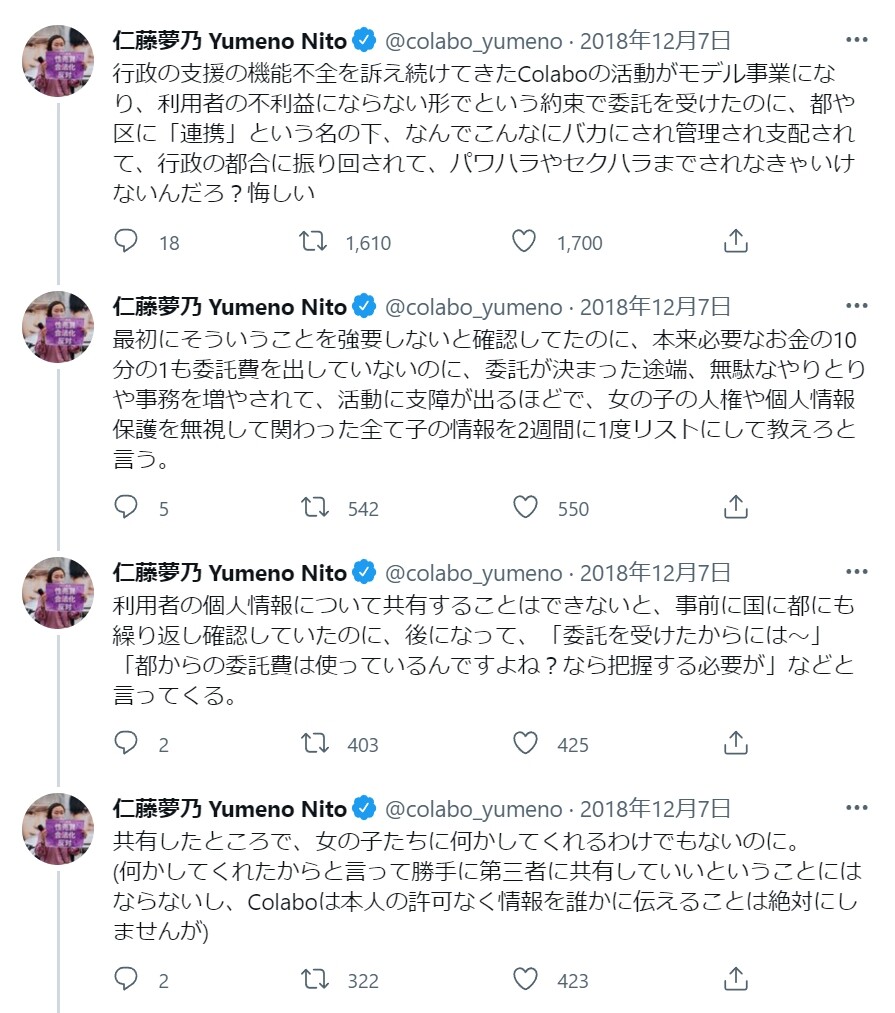 これ「女の子たちになにもしてくれないくせに」って言ってるけど都の委託事業で予算貰ってるのに「なにもしてくれない」とは一体…