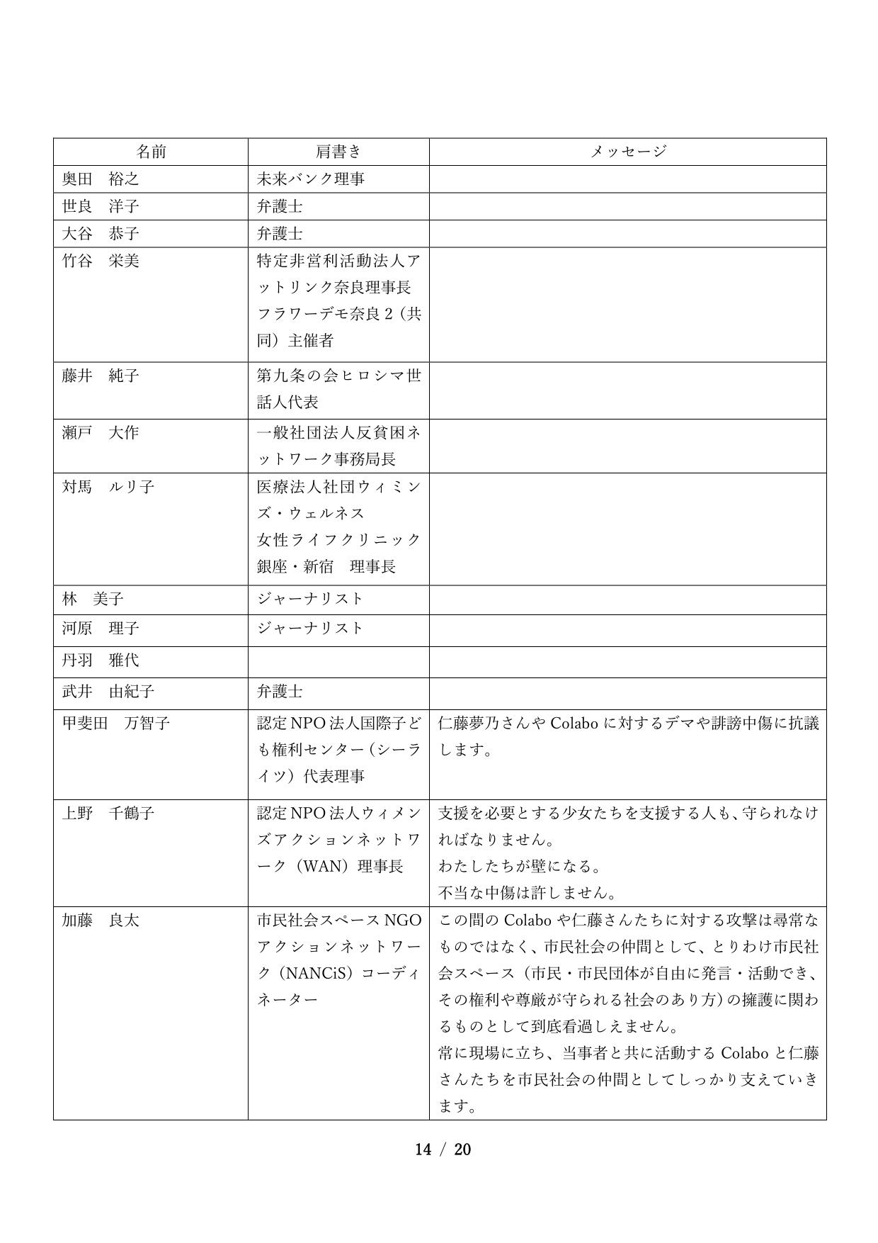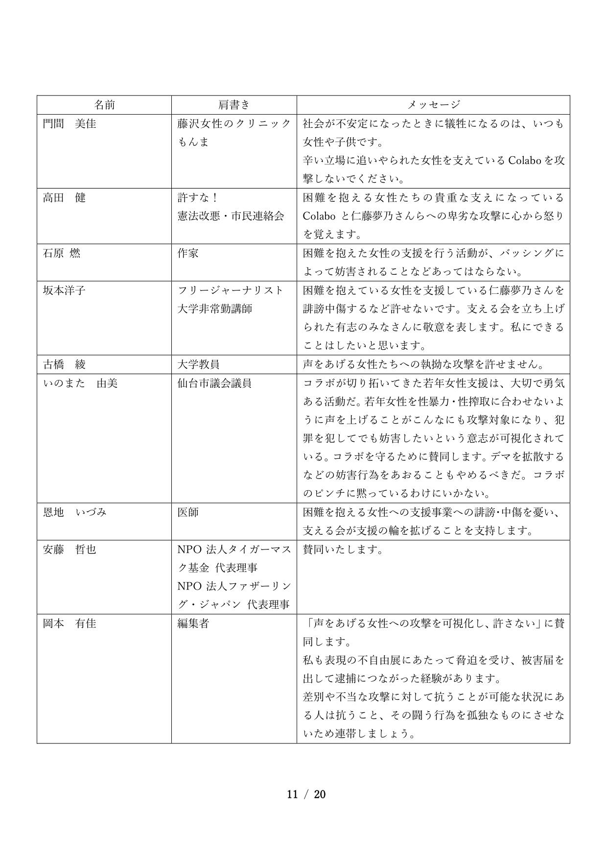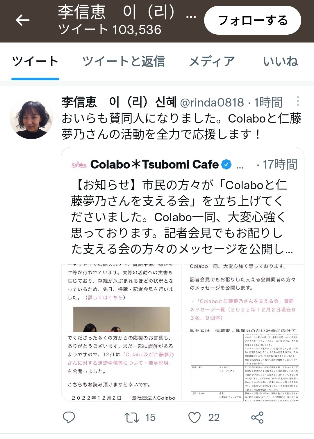 Colabo、「Colaboと仁藤夢乃さんを支える会」を立ち上げるが、賛同リストに「いつもの面子」と韓国系のフェミニズム団体だらけで総ツッコミ