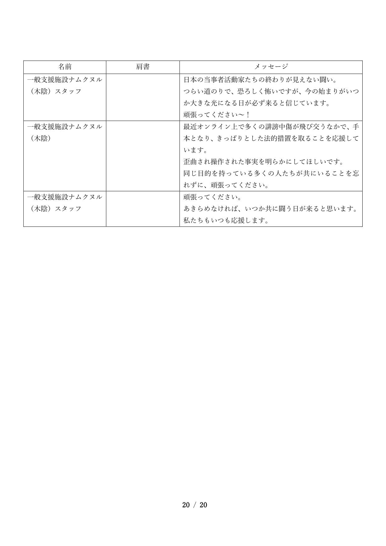 支える会に名前載せた人達は後悔してない?大丈夫?