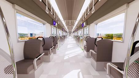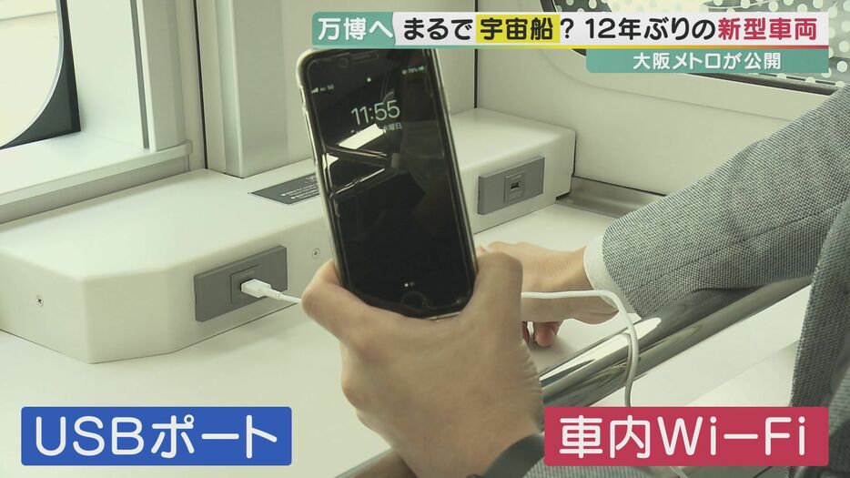 新型車両は宇宙船をイメージした外観で、先頭と最後尾にガラス張りの八角形のデザインを取り入れた。進行方向に向かって右の窓側は前向き、左は後ろ向きのシートを1列ずつ配置した車両も、1編成につき1両設置。地上走行時に景色を楽しめるようにした。優先席のシートは青色で、付近のドアも青く塗装し、ホームからでも分かりやすくした。
