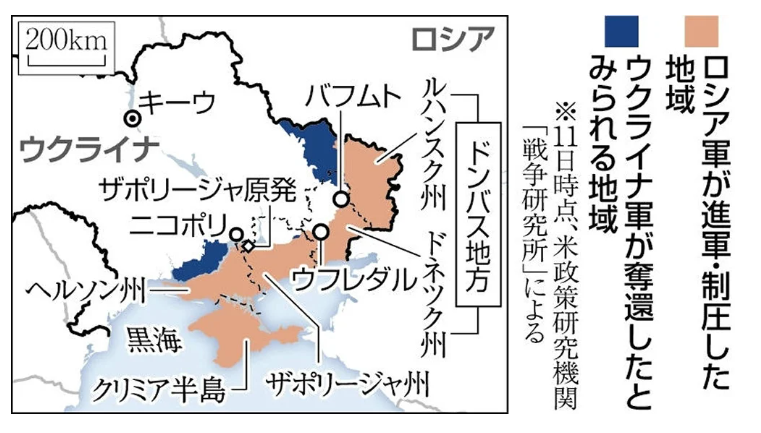 ロシア側情報源は6日〜12日の攻勢について「我が軍は主導権を握っているものの戦略的な攻勢には出ておらず、司令部も予備戦力の投入を決断していない。クピャンスク方面ではオスキル川東岸に足場を築くための戦いが進んでおり、スバトボ、クレミンナ、テルニーでも戦闘が行われているものの著しい前進はなく、バフムートではクラスナ・ホラの解放に成功、パラスコヴィーフカを包囲してスラビャンスクへの道(M03)を掌握したが、ヴーレダーでは組織的な抵抗に直面して我々の部隊がやられた。敵は我が司令部のミスと部隊全体の準備不足に付け込んだ」と指摘している。