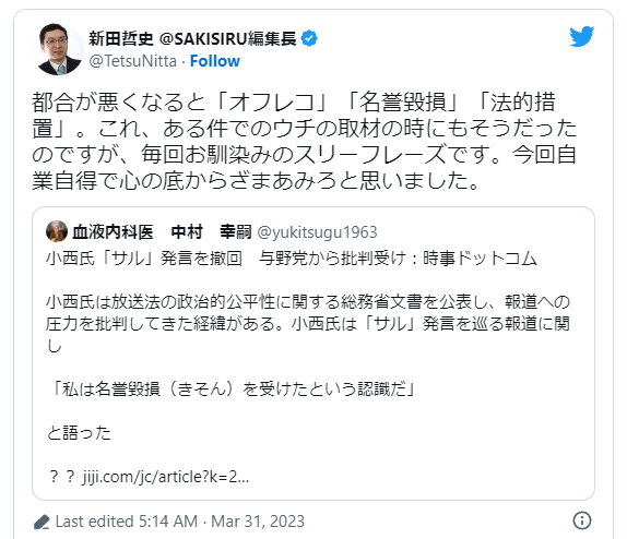 どう見ても立憲とマスコミが高市への冤罪ふっかけたのを小西を吊し上げることで誤魔化してるようにしか見えんのよなぁ