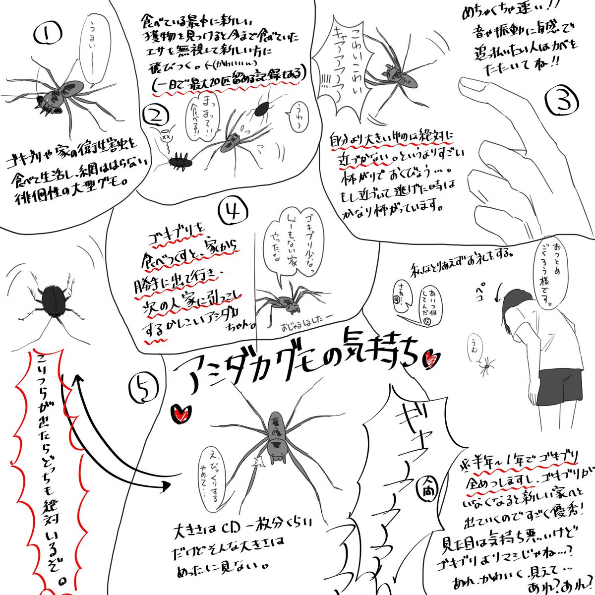 怖くないよ!アシダカグモの本心知って 生態描いたイラストが面白い