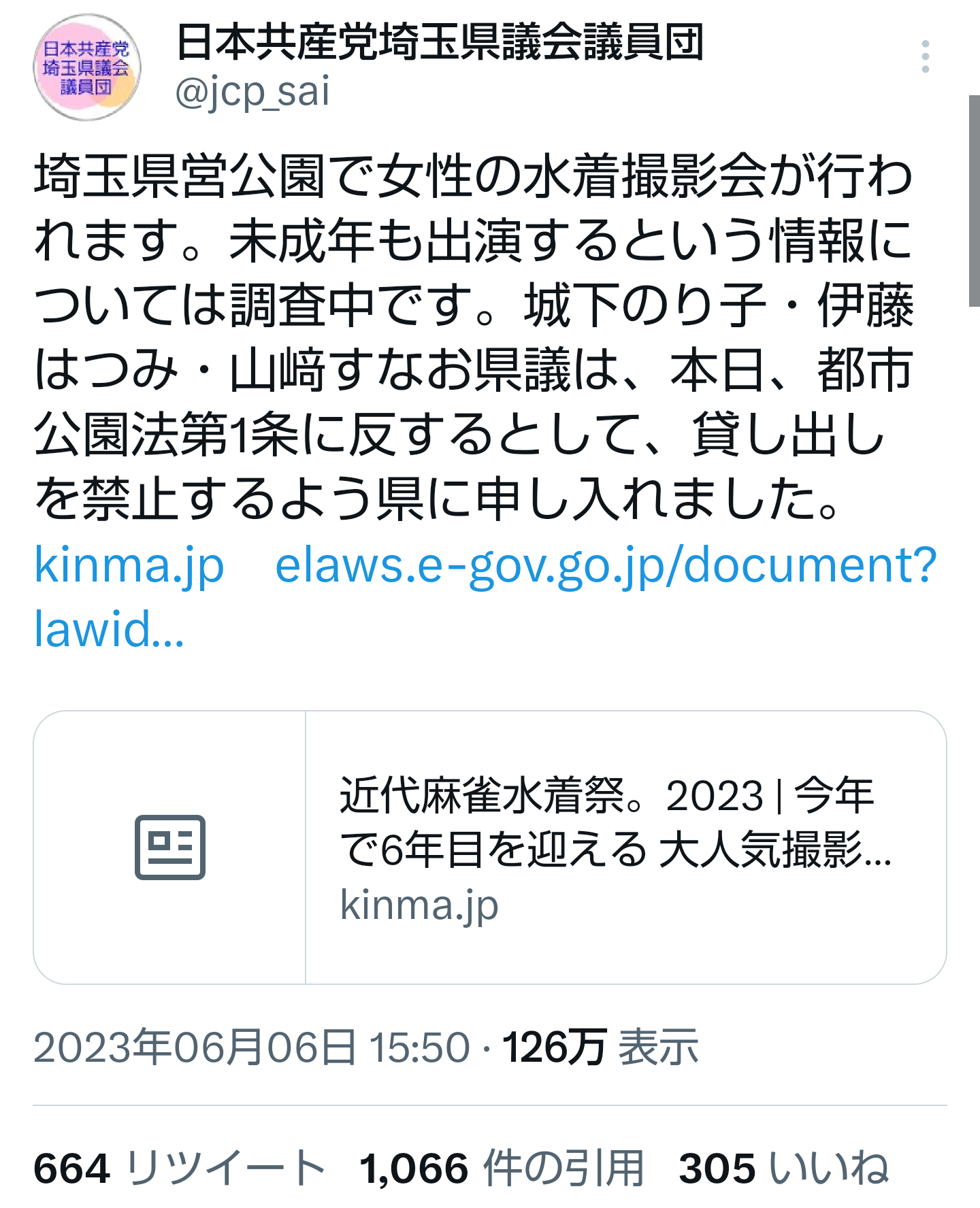 — ÆüËܶ¦»ºÅÞºë¶Ì¸©µÄ²ñµÄ°÷ÃÄ (@jcp_sai) June 6, 2023