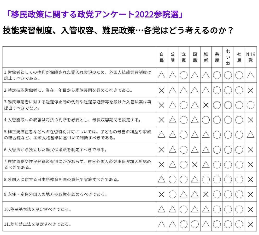 むしろ自民が一番移民に厳しいスタンスだからな