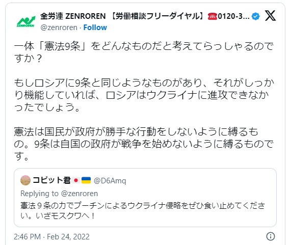 9条のためなら日本や日本人にその剣を向けると言ってるに等しいだろコレ