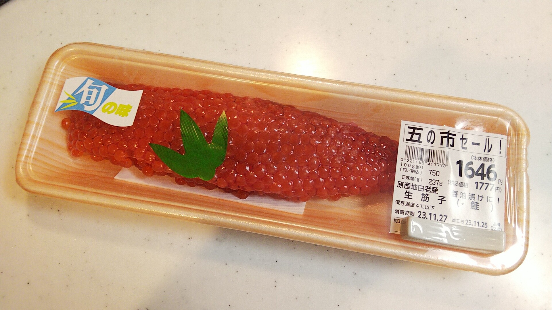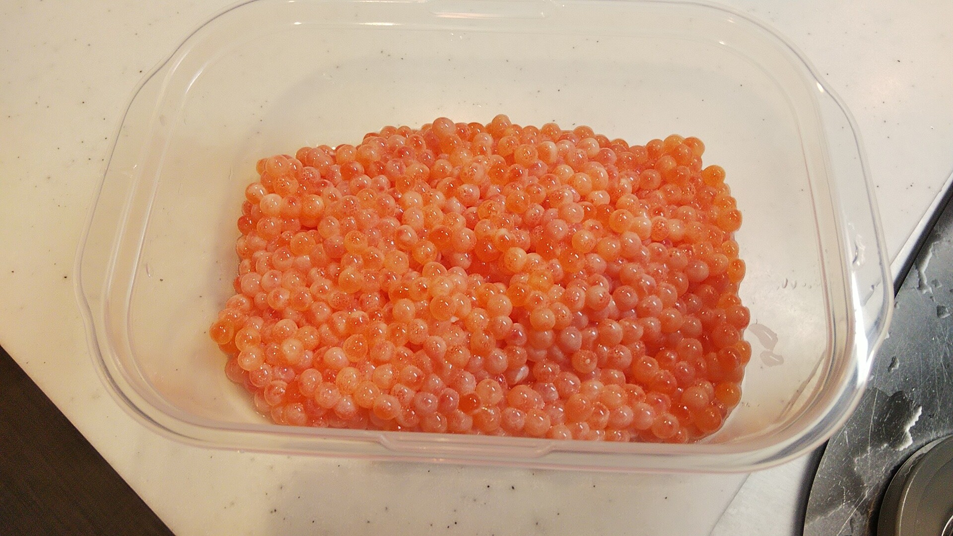 本来のブラウントラウトや大西洋鮭のじゃなく北米から移入したニジマス系の改良品種の卵がメイン