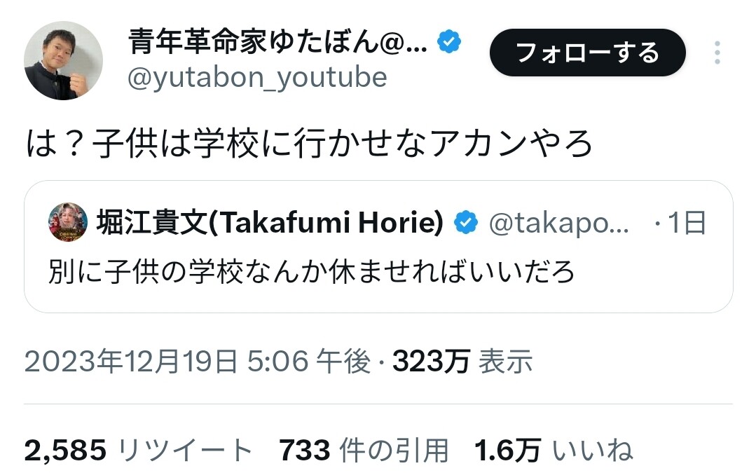 ホームレス発言の時はゆたぼんも絡んでたな。