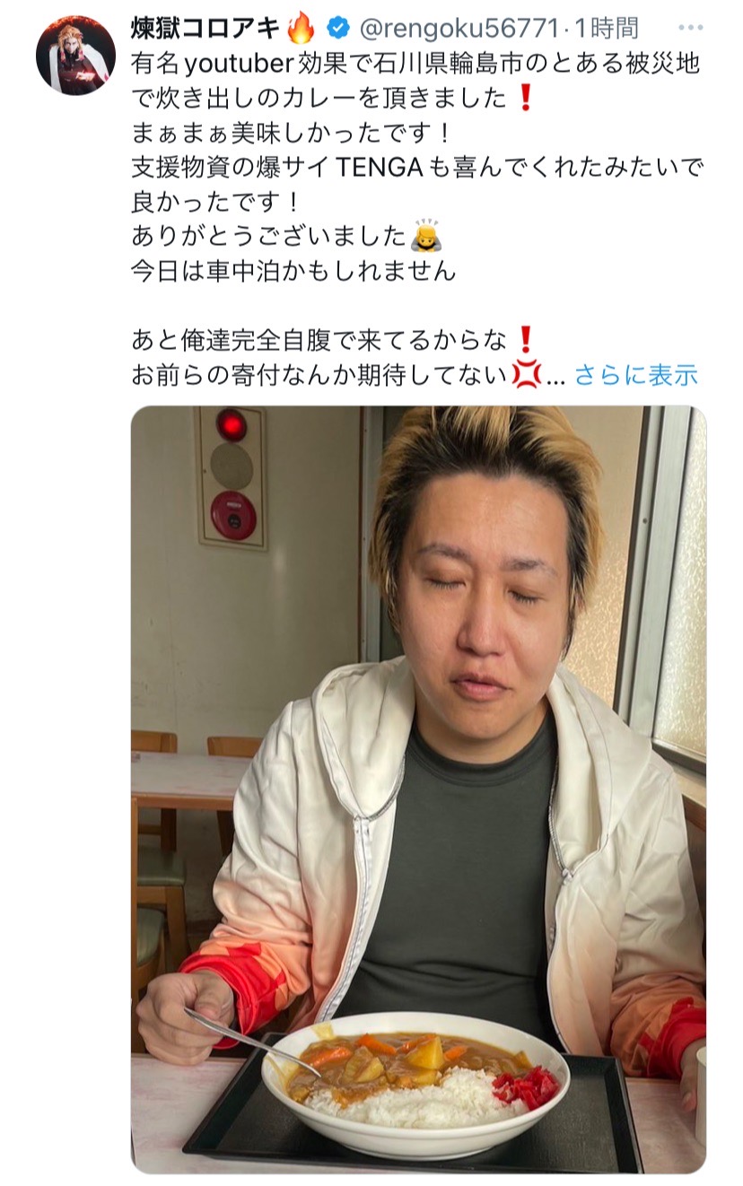 わざわざ被災地に焚き出しのカレー食いに行ったのか?
