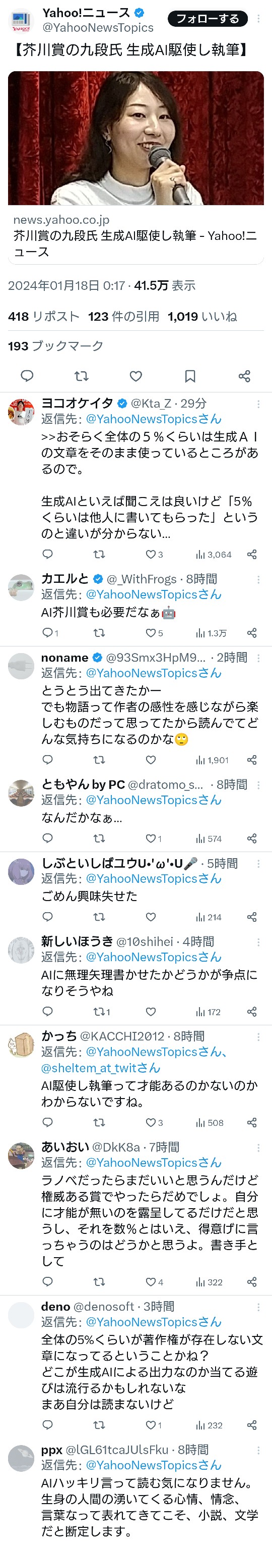芥川賞のやつAIにかかせて炎上してる(´・ω・`)