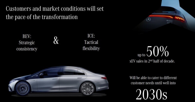ドイツMercedes-Benz(メルセデス・ベンツ)グループは、2030年までに「市場が許す限り」(同社)新車販売の全てを電気自動車(EV)にする計画を撤回した。2030年代もプラグインハイブリッド車(PHEV)などエンジンを搭載した電動車を販売する。各地域の排ガス規制に対応するため、新しいエンジンも開発しているという。2023年から続くEVの減速で、EVシフトに注力してきた欧米の自動車メーカーは戦略の見直しを余儀なくされている。