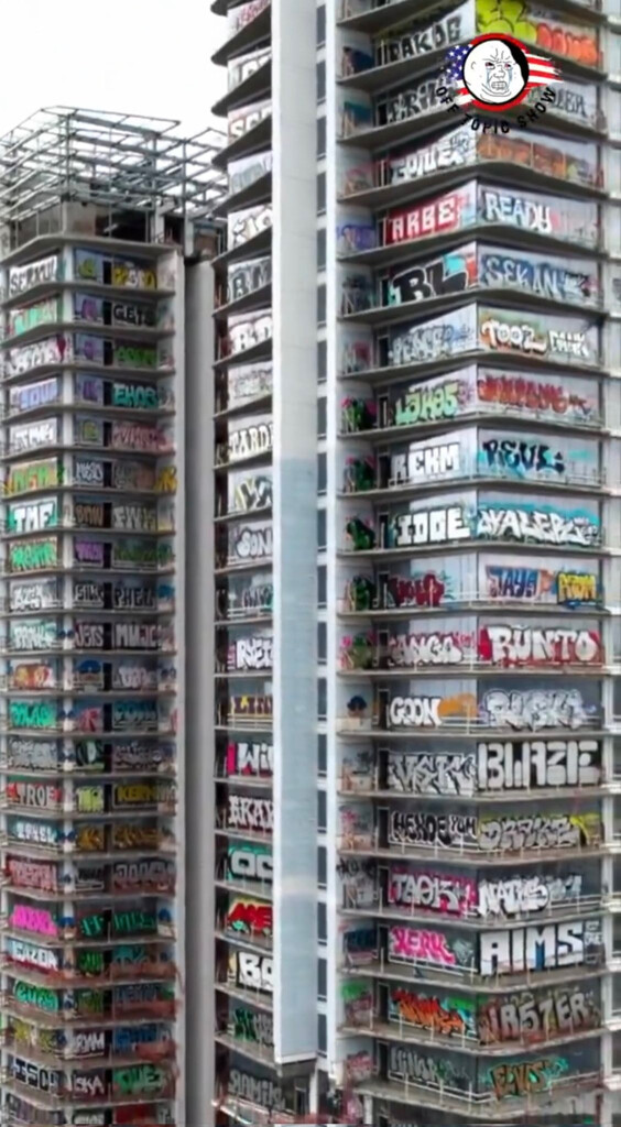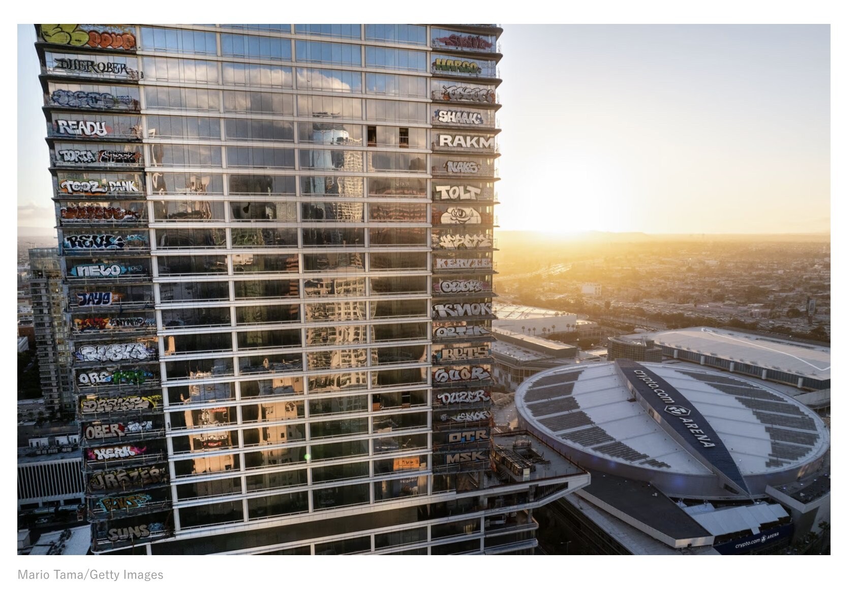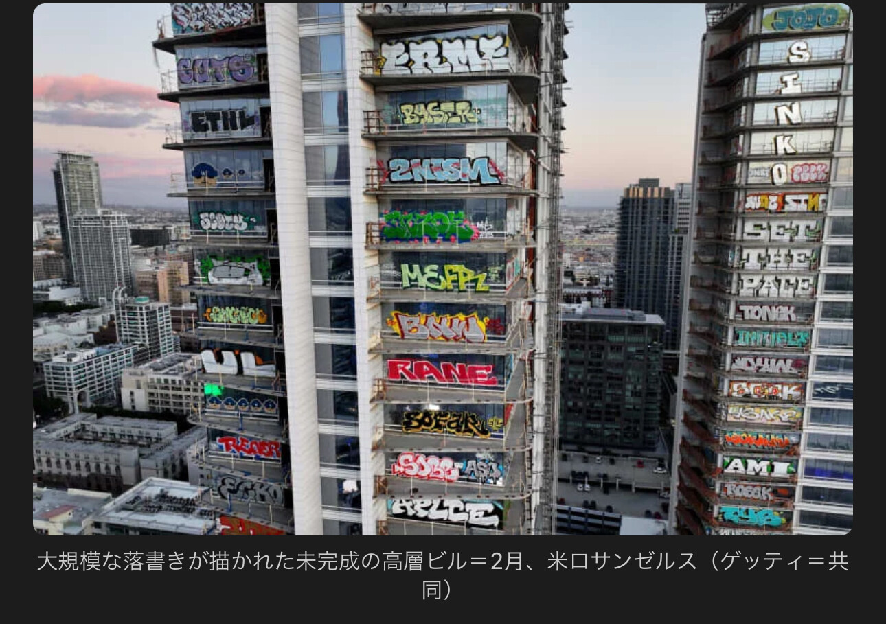 米ロサンゼルス中心部にそびえる未完成の高層ビル群に大規模な落書きが描かれ、話題になっている。