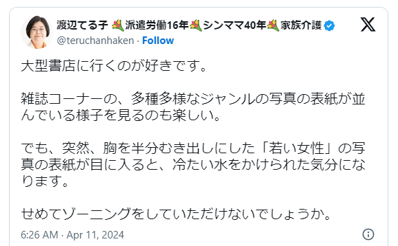 女性の姿を撮影したものを不快と言うほうが女性蔑視的で人権問題的にやばいんちゃうか