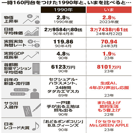 一時160円台をつけた1990年と、いまを比べると…