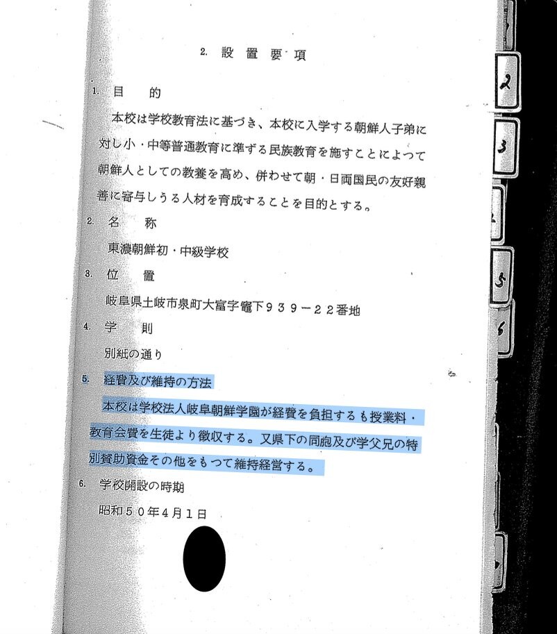1)本校は学校法人岐阜朝鮮学園が経費を負担するも授業料・ 教育会費を生徒より徴収する。