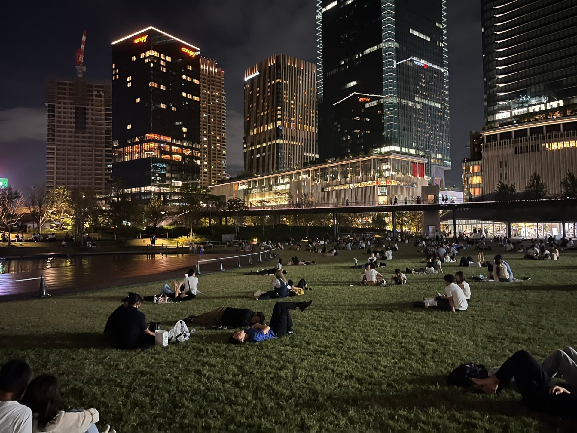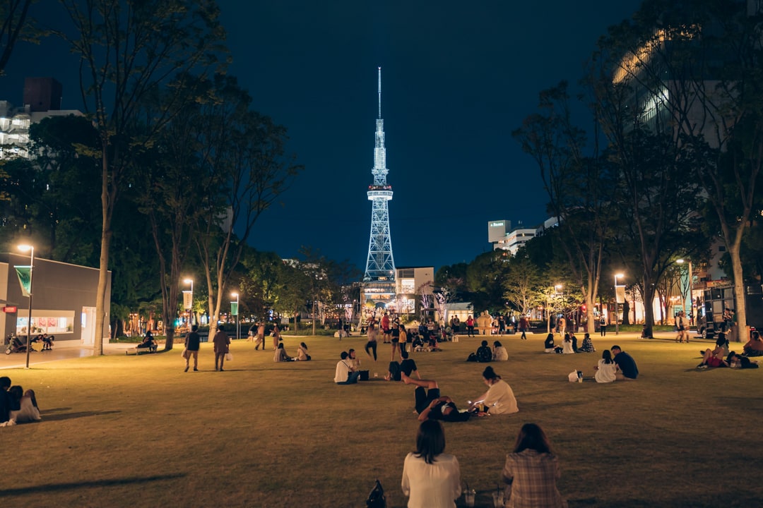 名古屋もテレビ塔の北側を芝生にしたが、夜中は人おらんな