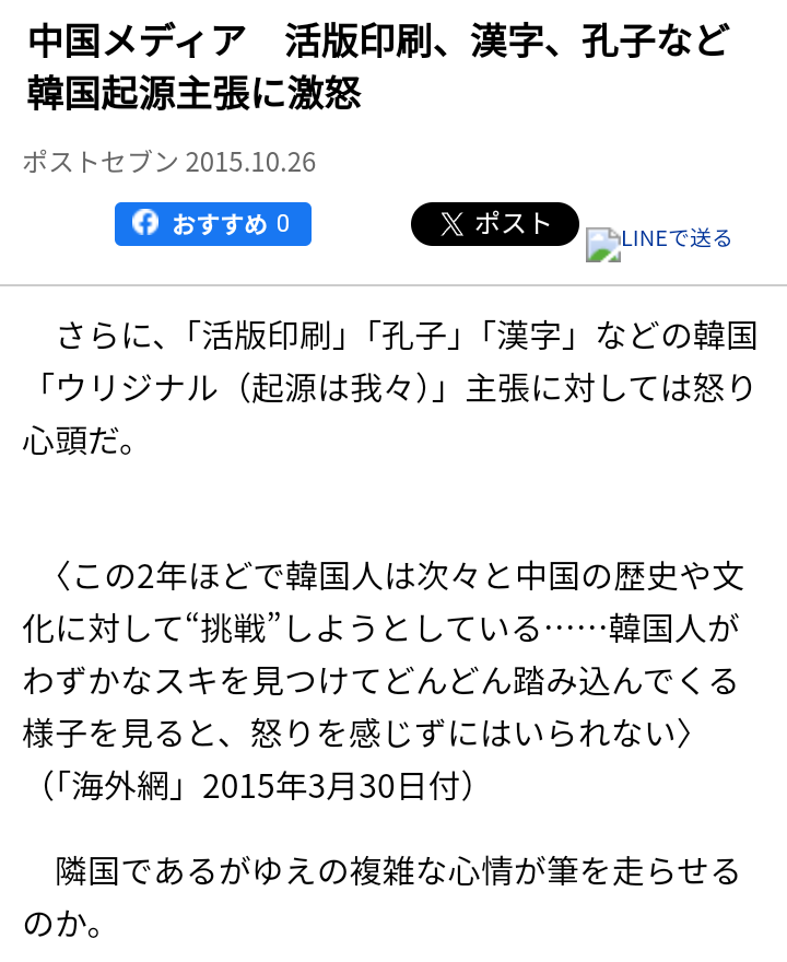 活版印刷、漢字、孔子も韓国起源な
